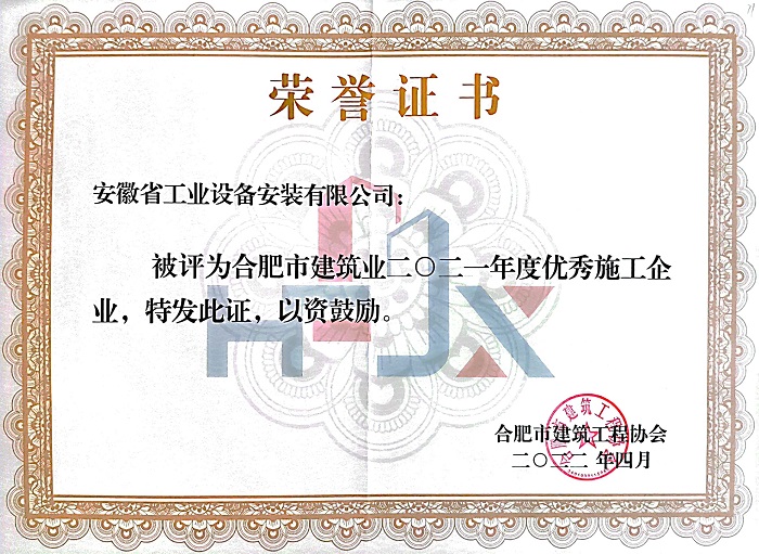 近日,合肥市建筑工程協(xié)會(huì)傳來(lái)喜訊,2021年度合肥市優(yōu)秀企業(yè)、單項(xiàng)先進(jìn)企業(yè)的評(píng)選已出爐,安徽安裝再次斬獲“合肥建筑業(yè)優(yōu)秀施工企業(yè)”“合肥建筑業(yè)安全管理先進(jìn)企業(yè)”榮譽(yù)稱(chēng)號(hào)。