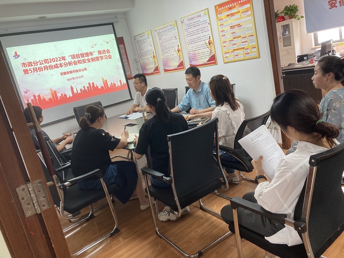 為進(jìn)一步推進(jìn)分公司項(xiàng)目管理年活動(dòng)的開(kāi)展,5月25日下午市政分公司在分公司會(huì)議室召開(kāi)“項(xiàng)目管理年”推進(jìn)會(huì)暨5月份成本分析會(huì)議,黨支部書(shū)記胡迎東主持會(huì)議,分公司機(jī)關(guān)員工、項(xiàng)目員工參加會(huì)議,會(huì)議以現(xiàn)場(chǎng)加視頻方式召開(kāi)。