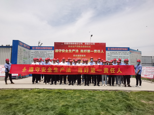正值第21個(gè)全國“安全生產(chǎn)月”到來之際,5月31日上午,蚌埠分公司、房建(裝飾)分公司于凱盛項(xiàng)目部聯(lián)合舉行2022年“安全生產(chǎn)月”活動(dòng)啟動(dòng)儀式,蚌埠分公司、房建(裝飾)分公司領(lǐng)導(dǎo)班子及機(jī)關(guān)、項(xiàng)目部員工60余人參加本次啟動(dòng)儀式,儀式由蚌埠分公司副經(jīng)理郭洋主持。