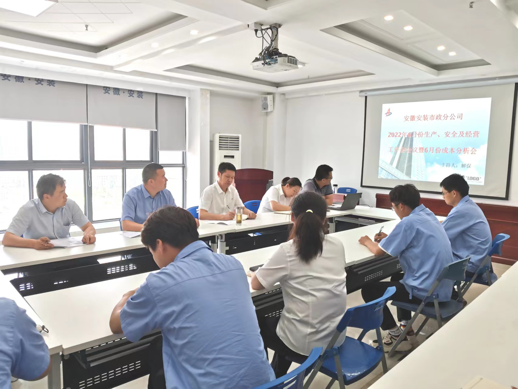 6月1日下午,市政分公司組織召開2022年6月份生產、安全及經營工作會議暨6月份成本分析會,分公司領導班子成員、部門負責人、各在建項目經理及分公司全體員工參會,會議由分公司工管部負責人解保主持。