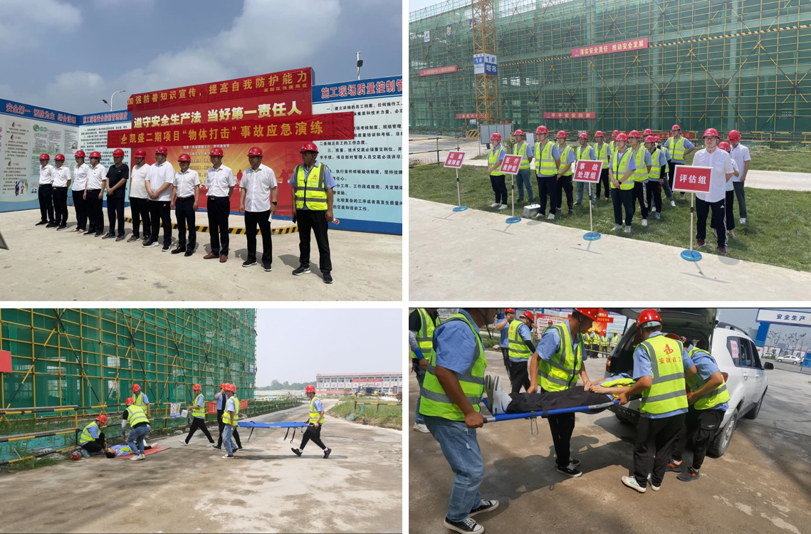 為了落實(shí)公司、分公司安全生產(chǎn)月的各項活動部署,進(jìn)一步提升施工現(xiàn)場人員的安全防范意識及應(yīng)急救援處置能力,6月20日上午10點(diǎn),蚌埠分公司、房建(裝飾)分公司在凱盛科技超薄柔性玻璃二期項目施工現(xiàn)場聯(lián)合開展了“物體打擊”事故應(yīng)急救援演練活動,公司安全管理部副經(jīng)理蔣秀正、蚌埠分公司領(lǐng)導(dǎo)班子成員、房建(裝飾)分公司領(lǐng)導(dǎo)班子成員、監(jiān)理單位代表、項目人員共30余人參加演練。