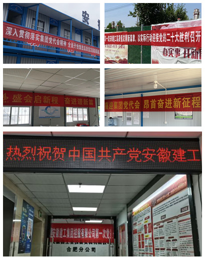 分公司黨支部還結(jié)合分公司班子理論(擴(kuò)大)學(xué)習(xí)會(huì)、黨小組(擴(kuò)大)學(xué)習(xí)會(huì)、宣傳櫥窗、橫幅標(biāo)語(yǔ)、LED屏等多種形式,大力營(yíng)造學(xué)習(xí)好、宣傳好、貫徹好建工控股第一次黨代會(huì)精神的濃厚氛圍,確保大會(huì)精神入耳、入腦、入心。