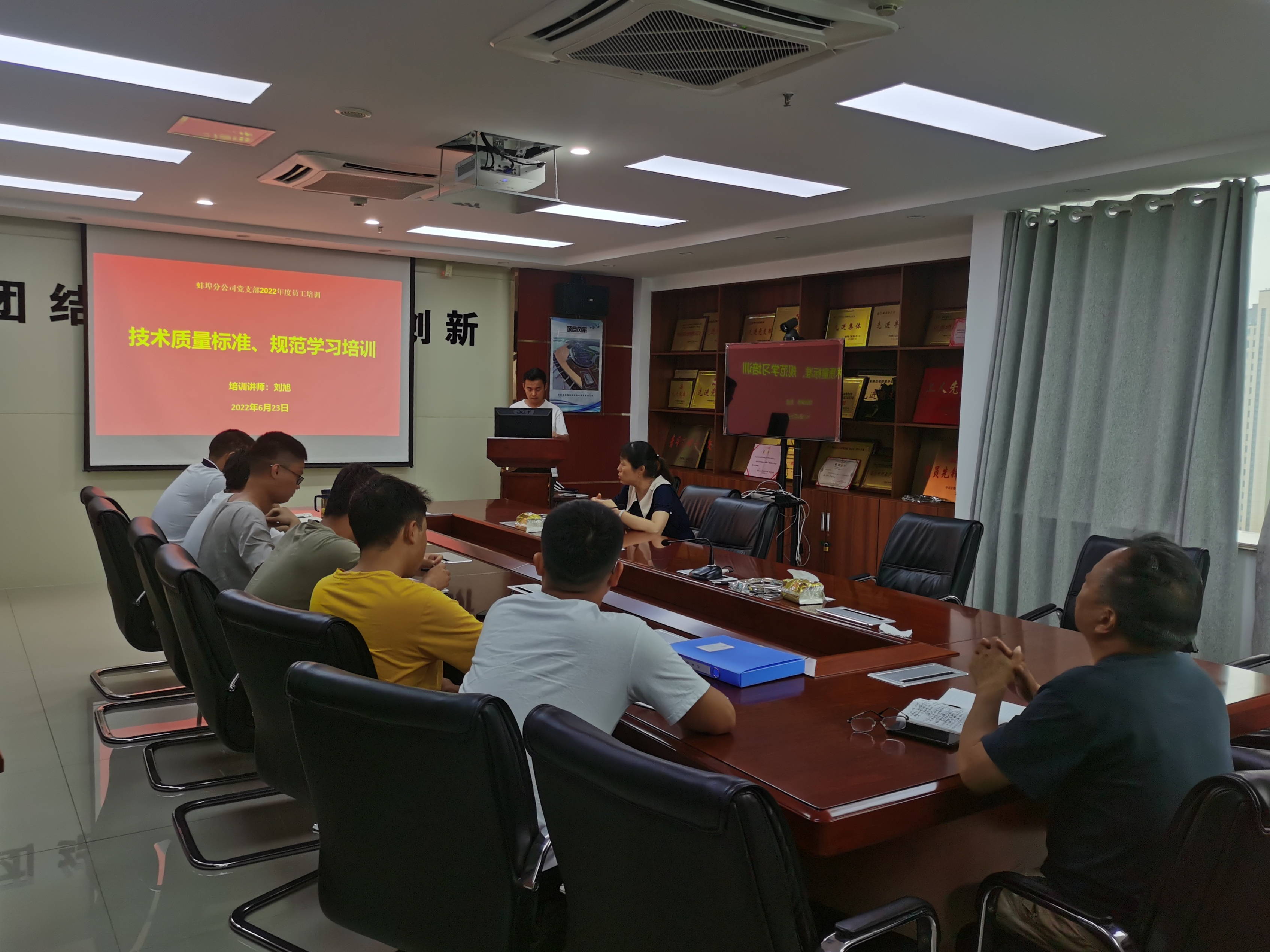 為扎實(shí)推進(jìn)蚌埠分公司“項(xiàng)目管理年”活動(dòng)開(kāi)展,強(qiáng)化項(xiàng)目員工對(duì)技術(shù)規(guī)范應(yīng)知應(yīng)會(huì)學(xué)習(xí)掌握,根據(jù)蚌埠分公司黨支部2022年度員工培訓(xùn)計(jì)劃安排,6月23日下午,分公司第五期培訓(xùn)課堂如期開(kāi)課。本期培訓(xùn)內(nèi)容為《技術(shù)質(zhì)量標(biāo)準(zhǔn)、規(guī)范學(xué)習(xí)》,由分公司技術(shù)質(zhì)量部劉旭主講。
