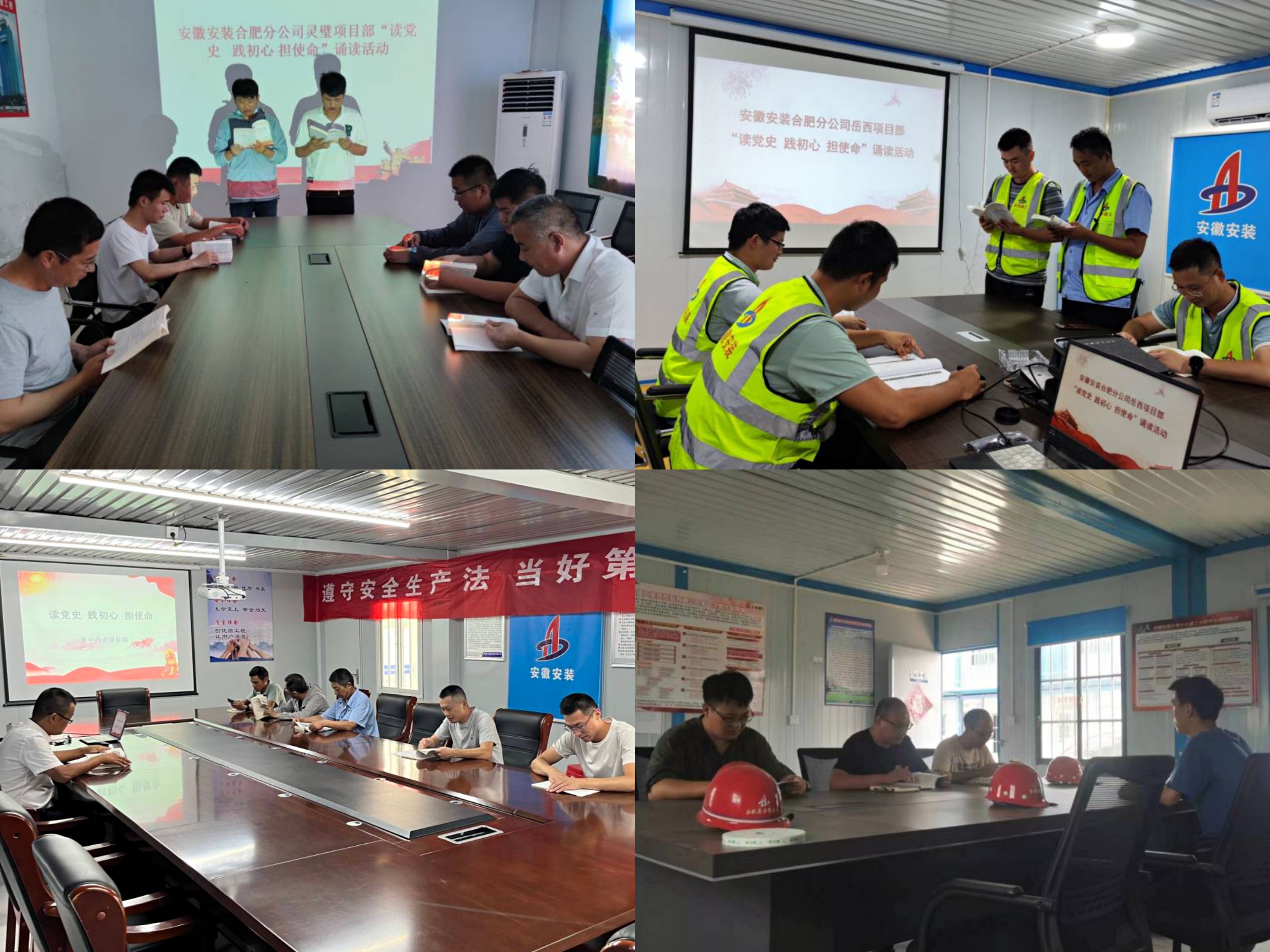 為慶祝中國共產(chǎn)黨成立101周年,進(jìn)一步弘揚(yáng)黨的光榮傳統(tǒng),重溫黨的光輝歷程,傳遞職工愛黨愛國情懷,“七一”前夕,合肥分公司黨支部組織開展了“讀黨史 踐初心 擔(dān)使命”誦讀活動。圍繞黨史相關(guān)文章、紅色詩詞、紅色家書、紅色故事等內(nèi)容,分公司機(jī)關(guān)和項目部廣大黨員職工積極參與。