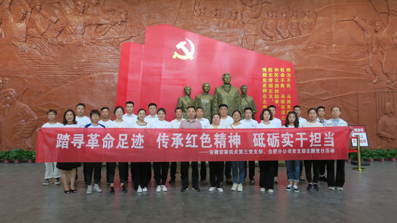 為熱烈慶祝中國共產(chǎn)黨成立101周年,深入學習貫徹習近平新時代中國特色社會主義思想,持續(xù)推動黨史學習教育走深走實。7月8日,機關第三黨支部和合肥分公司黨支部聯(lián)合開展以“踏尋革命足跡 傳承紅色精神 砥礪實干擔當”為主題的黨日活動,公司黨委書記、董事長胡六中,副總經(jīng)理李原以普通黨員身份參加活動。