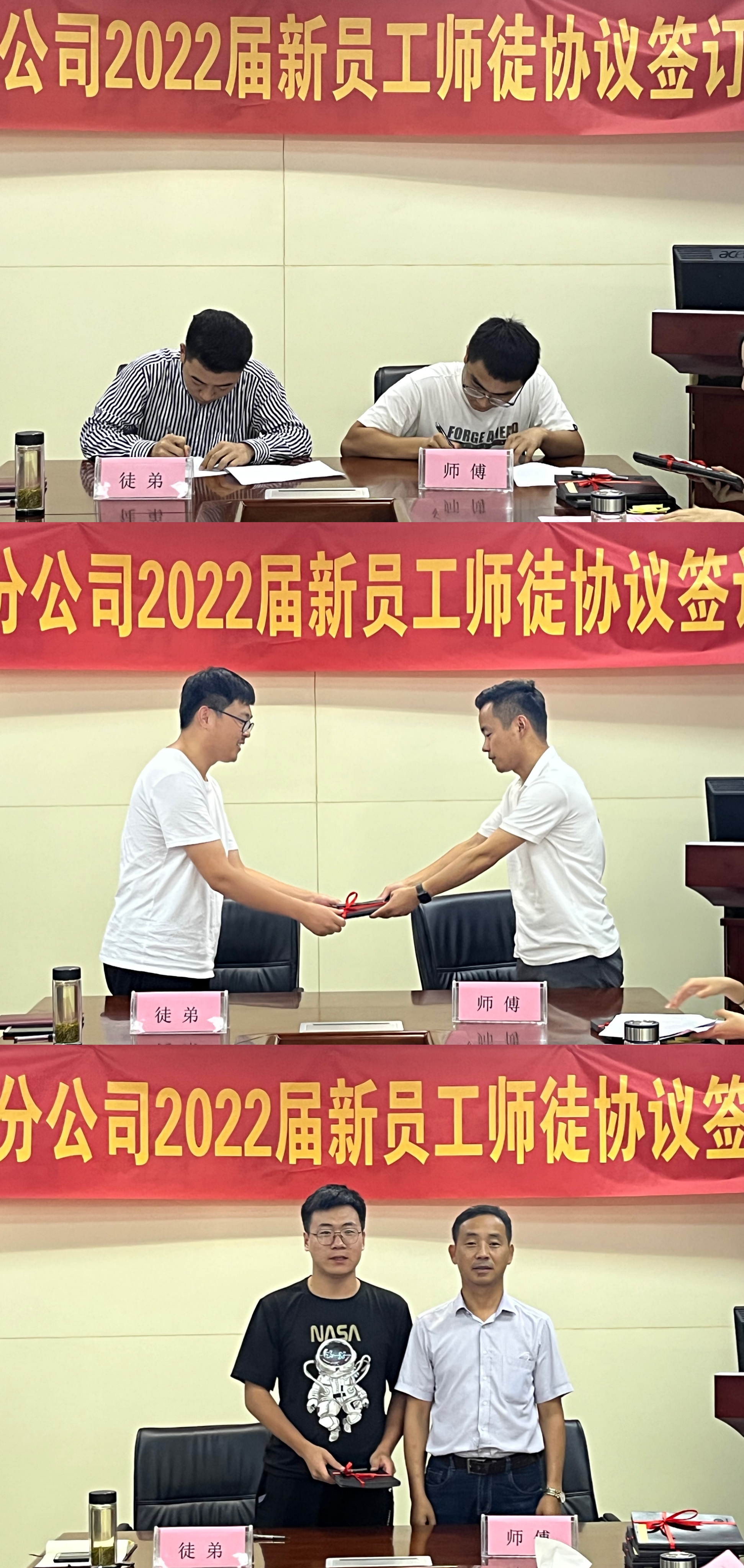 簽約儀式上,分公司黨支部書(shū)記程茂麗首先宣讀了分公司六對(duì)師徒結(jié)對(duì)人員名單。隨后,在與會(huì)人員的共同見(jiàn)證下,雙方簽訂師徒協(xié)議,徒弟們謙恭有禮地向師傅行拜師禮,師傅們則將精心準(zhǔn)備的禮物贈(zèng)送給徒弟,并合影留念。接著,師徒代表分別作表態(tài)發(fā)言。