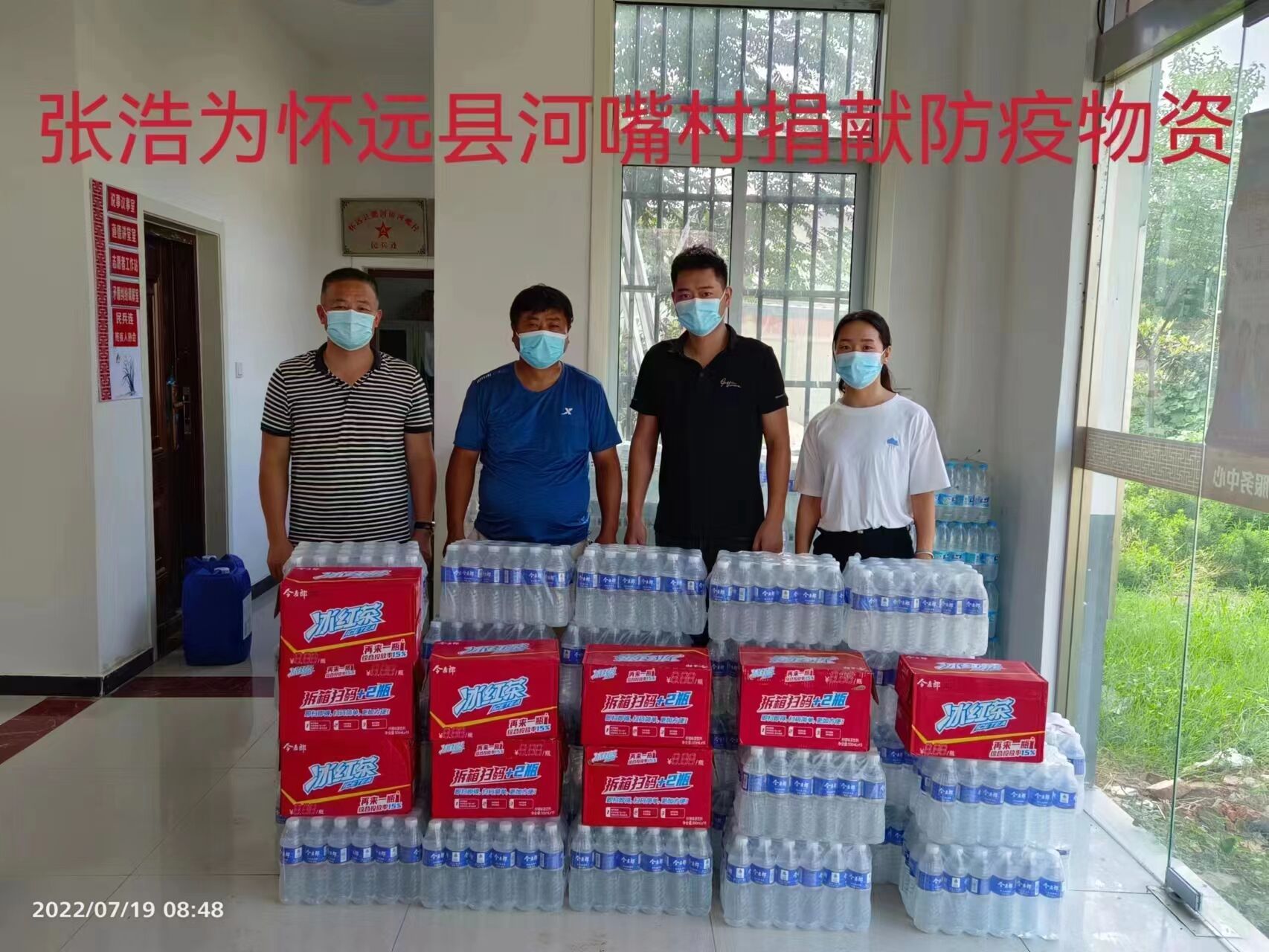 在志愿者服務(wù)期間,他親眼目睹了一線防控人員的辛苦和特殊時(shí)期物資籌措的不易,于是自費(fèi)1000余元購買了礦泉水、冰紅茶等一批防疫保障物資,主動(dòng)捐贈(zèng)給河嘴村村委會(huì),以實(shí)際行動(dòng)助力一線抗擊疫情。