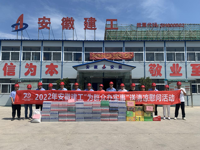 夏日炎炎,熱浪滾滾。近期,安徽多地拉響橙色、紅色高溫警報(bào),嚴(yán)峻“烤”驗(yàn)著每一名堅(jiān)守一線的施工人員,為保障員工的身體健康,將“為群眾辦實(shí)事”落到實(shí)處,8月11日上午,公司紀(jì)委書記、工會(huì)主席李楊赴房建(裝飾)分公司壹石通項(xiàng)目開展“為群眾辦實(shí)事”送清涼慰問活動(dòng),公司相關(guān)部門負(fù)責(zé)人、房建(裝飾)分公司黨支部書記王偉參加活動(dòng)。