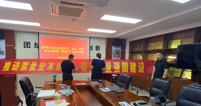 9月1日下午,蚌埠分公司召開8月份生產(chǎn)、安全、經(jīng)營、成本分析暨“質(zhì)量月”活動(dòng)啟動(dòng)會(huì),分公司領(lǐng)導(dǎo)班子成員、部門負(fù)責(zé)人及各項(xiàng)目經(jīng)理等參會(huì)。