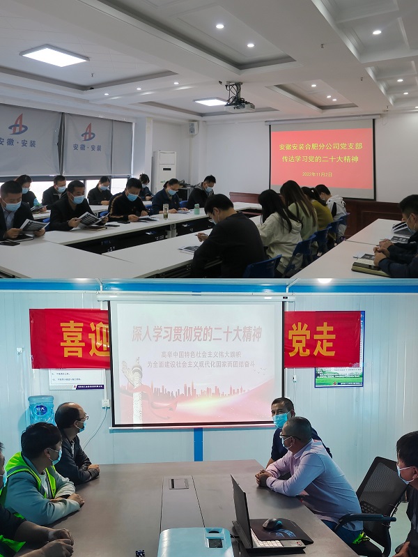 在黨的二十大勝利召開(kāi)之后,蚌埠分公司黨支部按照公司黨委要求,利用“三會(huì)一課”、黨員活動(dòng)日等載體組織分公司班子成員、全體黨員、各部門(mén)負(fù)責(zé)人及各在建項(xiàng)目經(jīng)理認(rèn)真學(xué)習(xí)了二十大精神及《中國(guó)共產(chǎn)黨章程》,并在分公司迅速掀起了二十大學(xué)習(xí)熱潮。10月27日上午,分公司召開(kāi)了黨員專(zhuān)題學(xué)習(xí)會(huì)。會(huì)上,集中學(xué)習(xí)了《高舉中國(guó)特色社會(huì)主義偉大旗幟為全面建設(shè)社會(huì)主義現(xiàn)代化國(guó)家而團(tuán)結(jié)奮斗》報(bào)告原文及《中國(guó)共產(chǎn)黨章程》。會(huì)議要求要把學(xué)習(xí)好、宣傳好、貫徹好黨的二十大精神作為當(dāng)前和今后一個(gè)時(shí)期的首要政治任務(wù),領(lǐng)導(dǎo)班子要帶頭學(xué)、深入學(xué),切實(shí)做到入腦入心;要將理論學(xué)習(xí)和實(shí)際工作相結(jié)合,將二十大精神轉(zhuǎn)化為干事創(chuàng)業(yè)的強(qiáng)大動(dòng)力,凝心聚力、扎實(shí)工作,不斷推動(dòng)安徽安裝高質(zhì)量發(fā)展;要努力完成分公司全年目標(biāo)任務(wù),大干四季度、沖刺全年紅,全力打好年尾收官之戰(zhàn)。