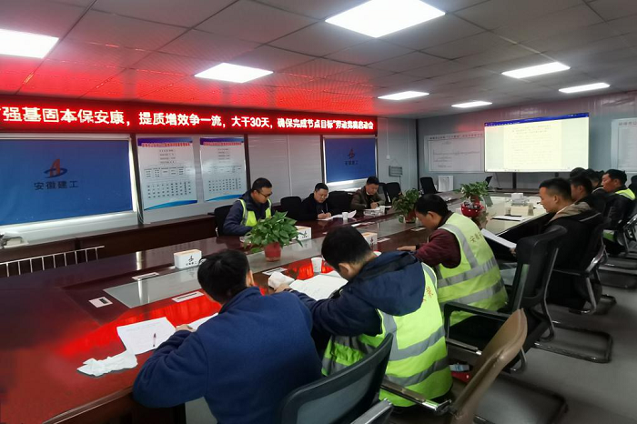為持續(xù)貫徹落實集團公司“強基固本保安康,提質(zhì)增效爭一流”主題勞動競賽活動精神,11月25日上午,蚌埠分公司蚌埠市公安局“三個基地”項目部召開“強基固本保安康,提質(zhì)增效爭一流,大干30天,確保完成節(jié)點目標(biāo)”勞動競賽啟動會。分公司經(jīng)理、黨支部副書記趙銘亮,黨支部書記、副經(jīng)理王偉,項目部全體管理人員及施工班組代表參加會議。