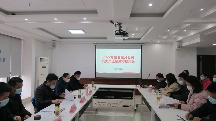 為進一步完善崗位績效考核體系,調(diào)動廣大員工工作積極性,1月5日上午,合肥分公司在職工之家召開分公司2022年度機關(guān)部門和員工績效考核大會,分公司領(lǐng)導(dǎo)班子成員、機關(guān)全體員工參加了會議,會議由公司總經(jīng)理助理、分公司黨支部書記、經(jīng)理趙永峰主持。