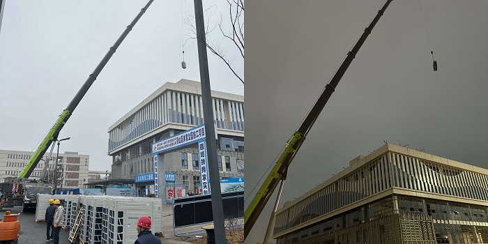 迎難而上、克服困難,完成樓頂設(shè)備吊裝