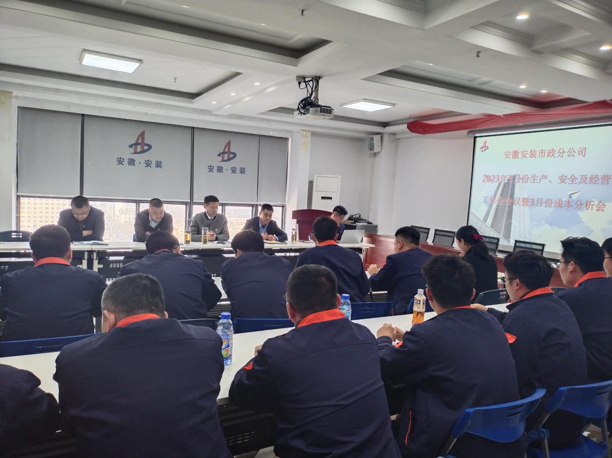 3月4日下午,市政分公司在公司十五樓職工之家組織召開分公司2023年3月份生產(chǎn)、安全及經(jīng)營工作會議暨月份成本分析會,分公司領(lǐng)導(dǎo)班子成員、部門及項(xiàng)目部全體人員參會,會議由分公司副經(jīng)理張漢軍主持。