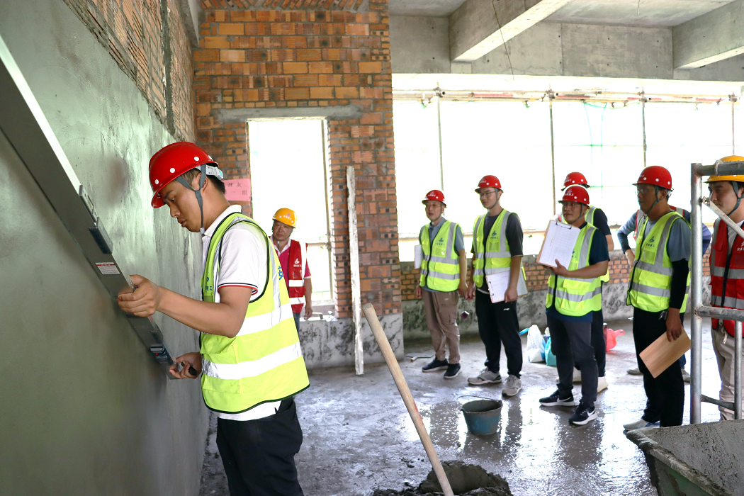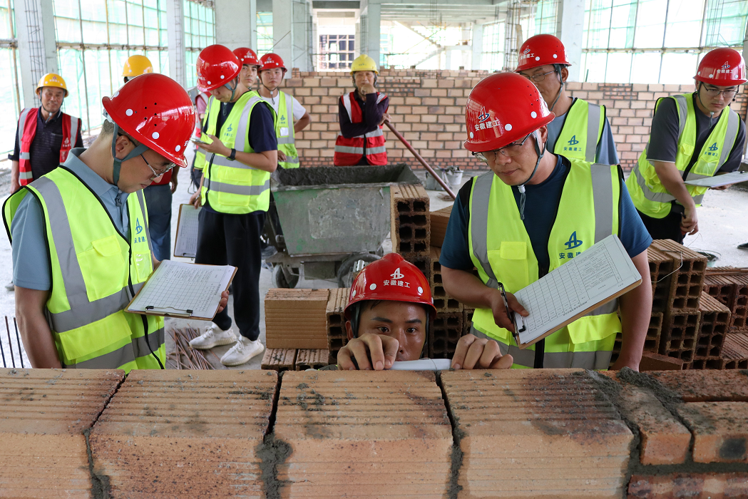 此次技能大賽選在阜南一小項(xiàng)目施工現(xiàn)場(chǎng)實(shí)際作業(yè)面進(jìn)行比賽,即避免了砌筑抹灰成品的浪費(fèi),真正將技能競(jìng)賽做實(shí)做細(xì),又大大提升了全員的施工質(zhì)量意識(shí),達(dá)到了提升勞務(wù)隊(duì)伍專業(yè)技能,弘揚(yáng)工匠精神,以賽促效、以賽促建的目的,整個(gè)比賽時(shí)限為2個(gè)小時(shí)。最終,評(píng)委組通過(guò)“看、摸、敲、照、靠、量、吊、套”,從完成度、觀感質(zhì)量、垂直度、平整度及文明施工等規(guī)范要求方面進(jìn)行現(xiàn)場(chǎng)綜合打分,并分別評(píng)選出一、二等獲獎(jiǎng)和優(yōu)勝參賽隊(duì)。