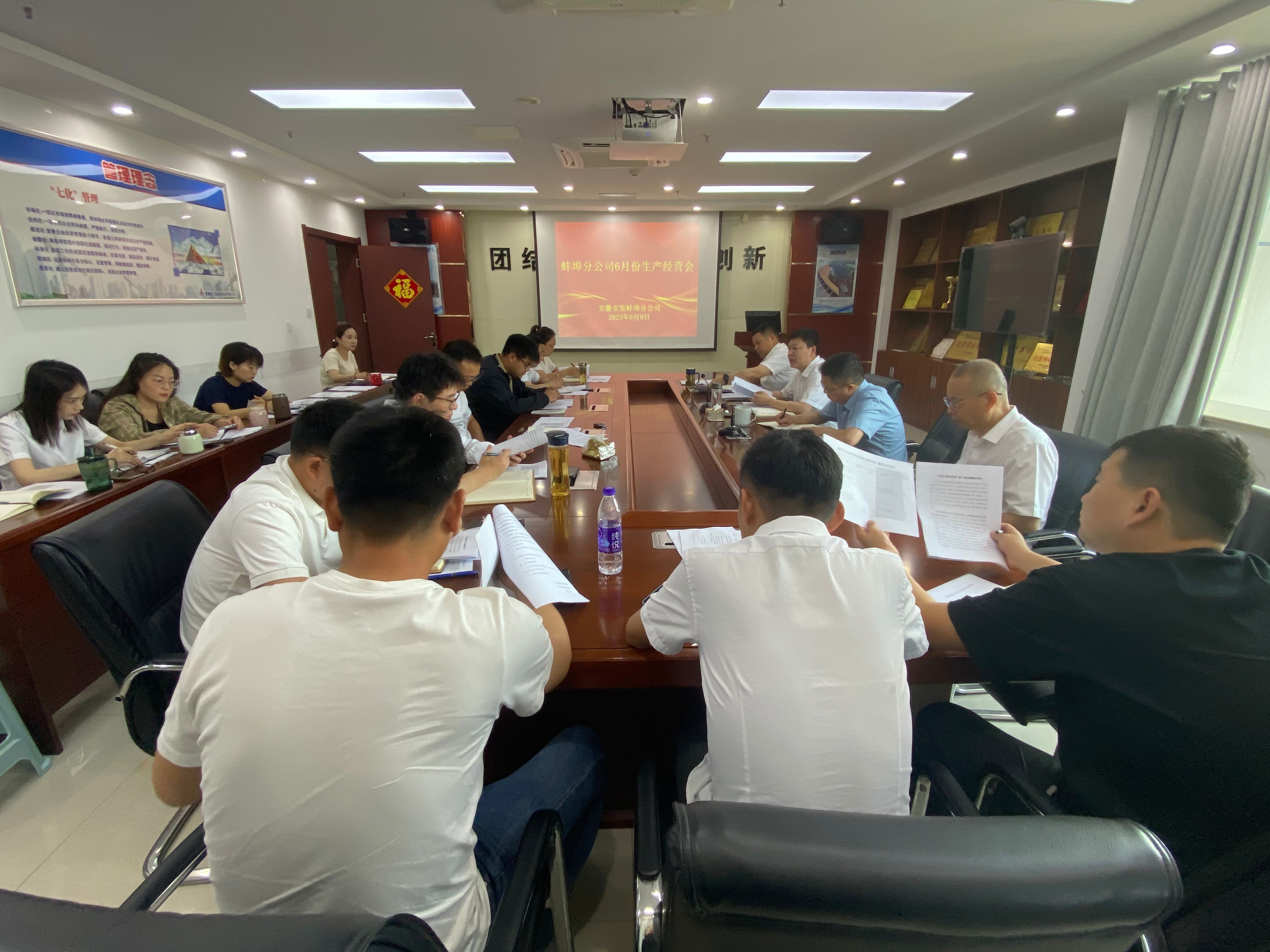 6月9日上午,蚌埠分公司組織召開6月份生產(chǎn)經(jīng)營會(huì),分公司領(lǐng)導(dǎo)班子成員、所屬各項(xiàng)目部、機(jī)關(guān)各部門負(fù)責(zé)人及工程管理部全體員工參加會(huì)議,會(huì)議由分公司副經(jīng)理郭洋主持。