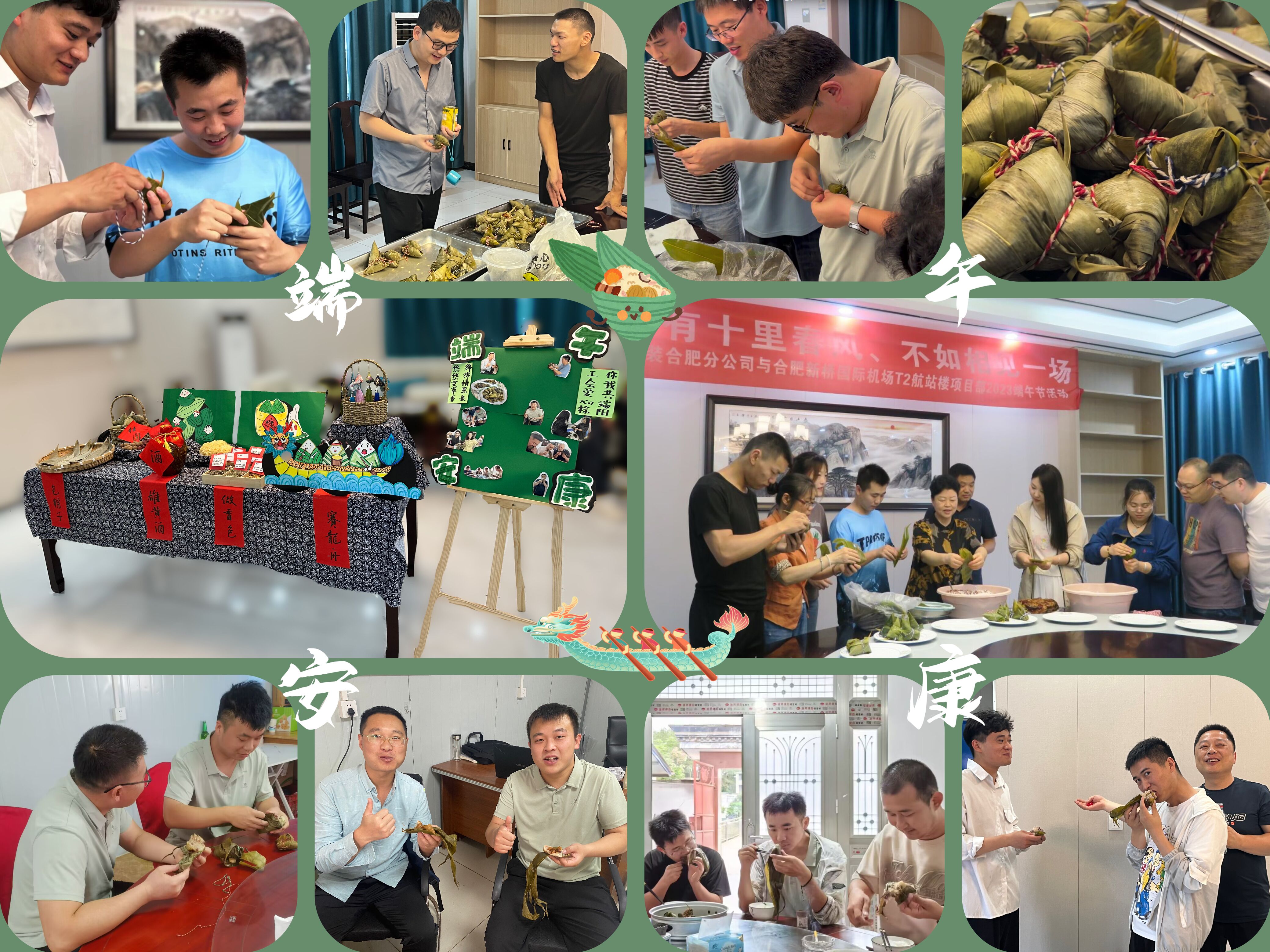 端午臨中夏,時(shí)清日復(fù)長(zhǎng),為傳承和弘揚(yáng)中華民族傳統(tǒng)文化,豐富職工群眾的精神文化生活,在端午傳統(tǒng)節(jié)日來(lái)臨之際,合肥分公司邀請(qǐng)合肥新橋國(guó)際機(jī)場(chǎng)T2航站樓項(xiàng)目部共同開(kāi)展了“粽有十里春風(fēng)、不如相見(jiàn)一場(chǎng)”主題活動(dòng),讓大家在項(xiàng)目上也能感受到家中的“粽香濃情”,感受到企業(yè)大家庭的關(guān)懷和溫暖。