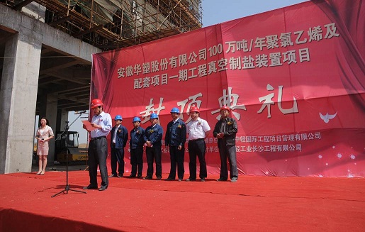 2011年4月28日,安徽省工業(yè)設(shè)備安裝公司滁州分公司承建的安徽華塑項目工程施工現(xiàn)場,到處場洋溢著一片祥和、喜慶的氣氛。上午10:18分,迎來了安徽華塑真空制鹽鹽硝車間土建主體結(jié)構(gòu)封頂儀式。公司總經(jīng)理王軍幫、副總經(jīng)理劉安俊,華塑公司黨委書記黃家發(fā)、 副總經(jīng)理梁東風(fēng),北京中輕國際工程管理有限公司現(xiàn)場總監(jiān)郭均川等領(lǐng)導(dǎo)應(yīng)邀出席了封頂儀式。本工程從開工到土建主體結(jié)構(gòu)封頂,在質(zhì)量、安全、進(jìn)度等方面受到了業(yè)主和監(jiān)理單位的一致好評,并獲得華塑園區(qū)二十多家施工單位綜合評比第二名得好成績。真空制鹽主體結(jié)構(gòu)施工進(jìn)度上創(chuàng)造了全國最短時間,為公司在今后進(jìn)一步占領(lǐng)鹽化工程市場打下了堅實的基礎(chǔ)。