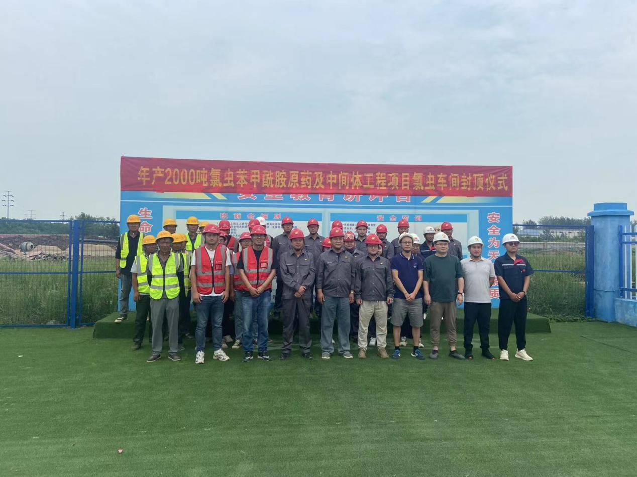 8月31日,蚌埠市淮上區(qū)化工園區(qū)內(nèi)年產(chǎn)2000噸氯蟲(chóng)苯甲酰胺原藥及中間體項(xiàng)目氯蟲(chóng)一號(hào)車(chē)間,伴隨著最后一方混凝土澆筑到位,聳立的車(chē)間主體被“封頂大吉”的大紅條幅和紅色祝福標(biāo)語(yǔ)裝點(diǎn)得格外喜慶!建設(shè)單位、監(jiān)理單位、施工單位等共同參加了封頂儀式。