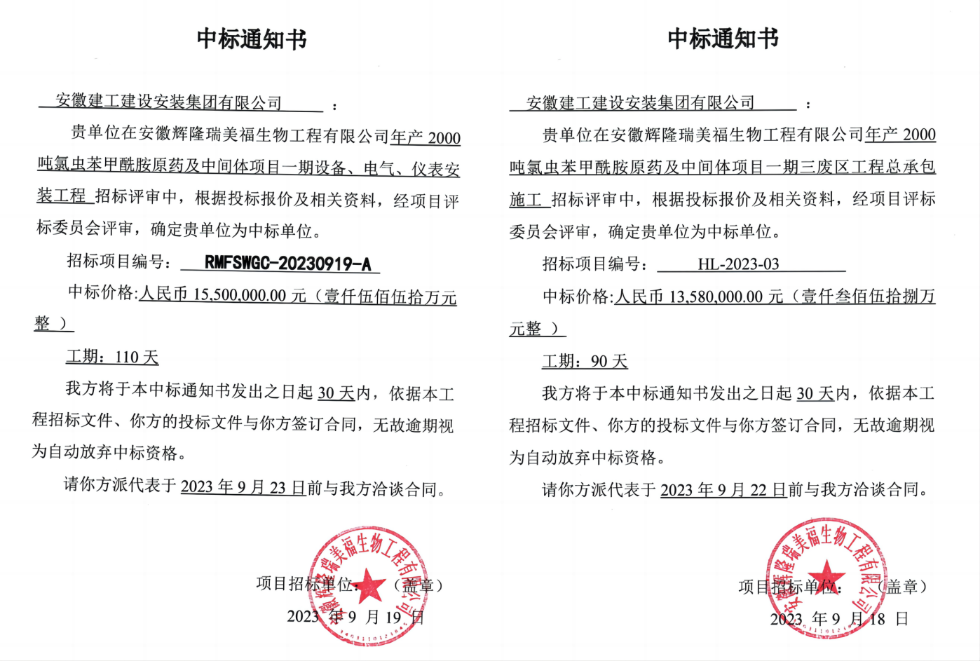 喜訊連連!建工安裝蚌埠分公司在本月連續(xù)中標安徽輝隆瑞美福生物工程有限公司年產2000噸氯蟲苯甲酰胺原藥及中間體項目一期三廢區(qū)總承包及設備安裝工程,合計中標金額2908萬元。分公司前期已中標并施工該項目一、二標段,目前已累計中標四個標段,合計中標金額達1.55億元,至此,輝隆一期經營工作圓滿達到預期目標。