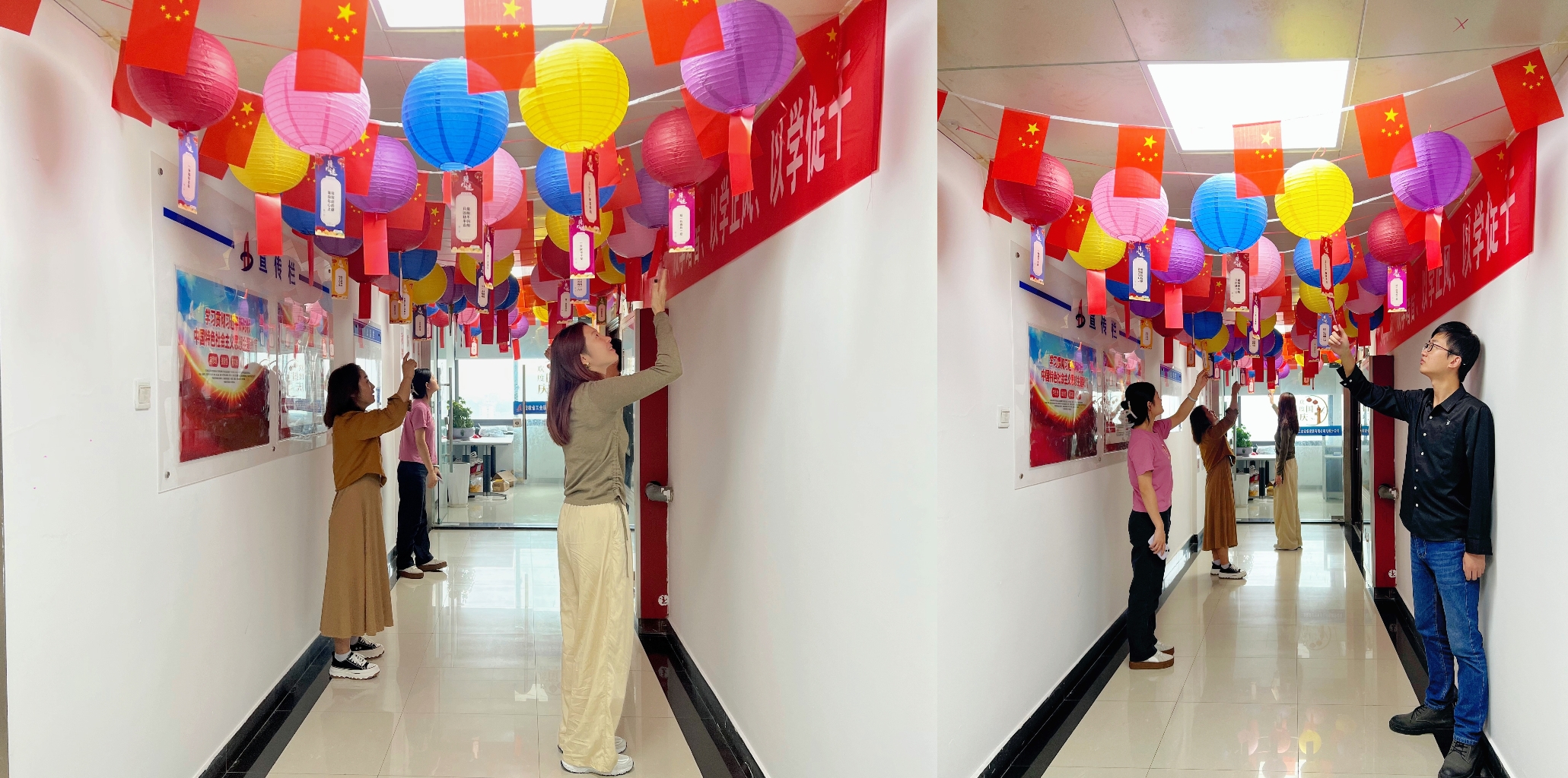 活動期間,分公司購置了各類節(jié)日裝飾品,對分公司工作環(huán)境進(jìn)行了精心裝扮,鮮紅的國旗和多彩的燈籠營造了濃厚的節(jié)日氛圍。活動過程中,分公司員工盡情分享工作中的感想與收獲,品嘗擺放的石榴等水果以及各式月餅,積極踴躍參加猜燈謎、投壺游戲等活動。在制作燈籠環(huán)節(jié),員工們?nèi)褙炞?,仔?xì)認(rèn)真地搭接燈籠的每一個(gè)構(gòu)件,看著承載著團(tuán)圓的傳統(tǒng)藝術(shù)品在手中慢慢成形,大家歡聲笑語、頗有成就。