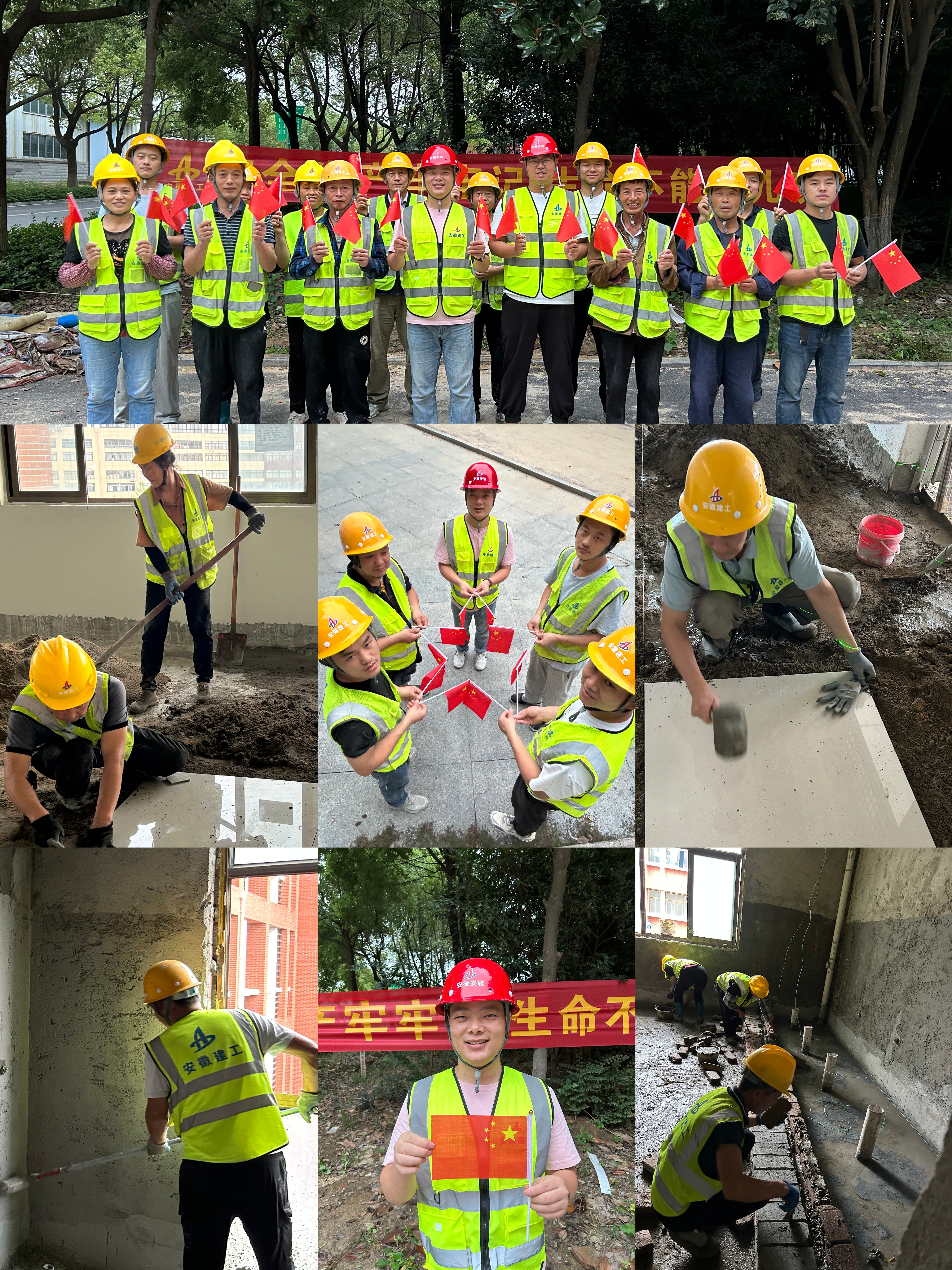 在安徽理工大學(xué)維修改造項(xiàng)目現(xiàn)場,面對(duì)工期緊、任務(wù)重的施工局面,項(xiàng)目部全體參建人員堅(jiān)持“時(shí)間就是成本、工期就是效益”的管理理念,共同加班加點(diǎn)堅(jiān)守崗位。他們以飽滿的熱情和充足的干勁,認(rèn)真履行合同,加強(qiáng)工程管理,嚴(yán)把工程質(zhì)量、安全、進(jìn)度,以實(shí)際行動(dòng)向中秋國慶獻(xiàn)禮!