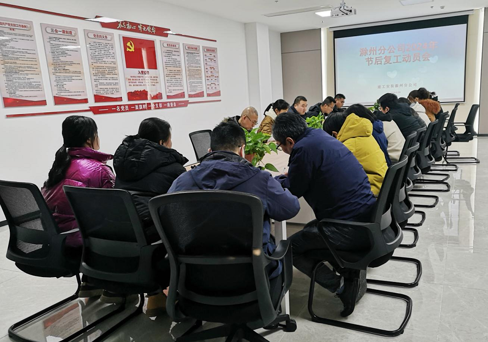 為認(rèn)真貫徹落實集團(tuán)、公司《關(guān)于加強節(jié)后復(fù)工復(fù)產(chǎn)安全生產(chǎn)工作的通知》相關(guān)要求,平穩(wěn)推進(jìn)節(jié)后復(fù)工復(fù)產(chǎn)各項工作。2月26日下午,建工安裝滁州分公司召開2024年節(jié)后復(fù)工復(fù)產(chǎn)動員會,會議由分公司經(jīng)理、黨支部副書記黃彥濤主持,分公司領(lǐng)導(dǎo)班子成員、機關(guān)全體員工參加會議。