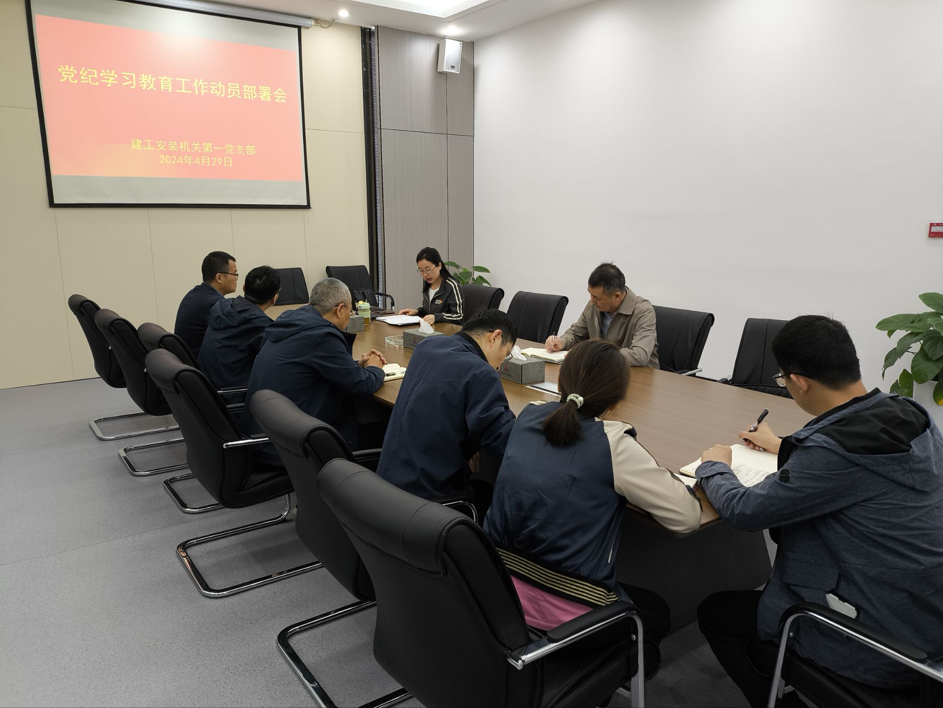 4月29日上午,機關(guān)第一黨支部召開黨紀學習教育工作動員部署會,公司黨委委員、紀委書記李楊以普通黨員身份參加了會議,會議由黨支部書記余群主持。