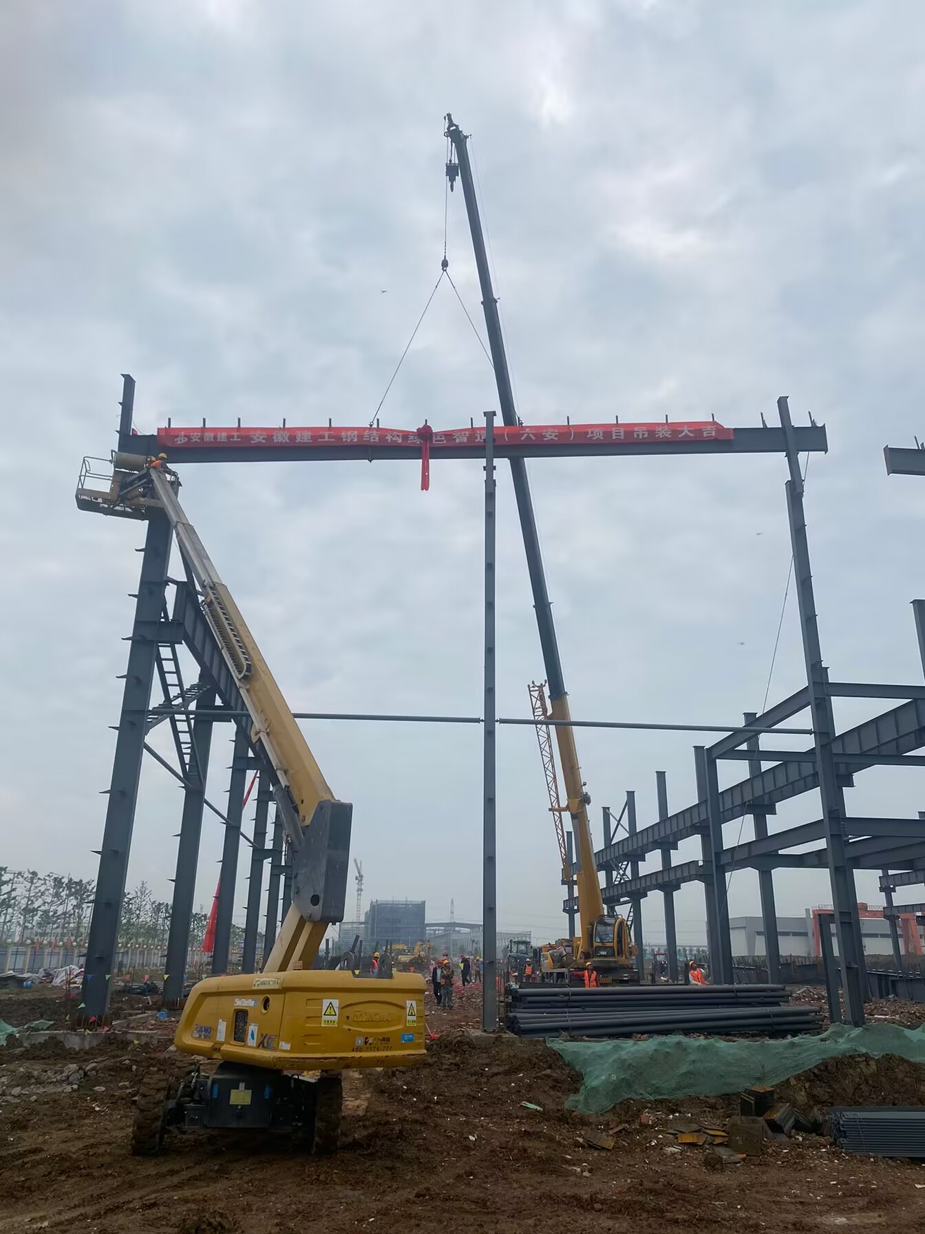 5月1日上午8點(diǎn)18分,建工安裝合肥分公司安徽建工鋼結(jié)構(gòu)綠色智造(六安)項(xiàng)目順利開(kāi)始“大跨度屋面梁吊裝作業(yè)”。