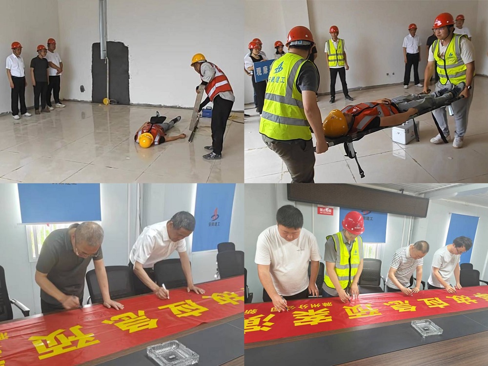 本次演練涵蓋事故發(fā)生、信息上報、預(yù)案啟動、醫(yī)療救援、現(xiàn)場搶險、安全疏散、現(xiàn)場評估、事故分析等內(nèi)容,涵蓋了事故應(yīng)急救援處置的各個環(huán)節(jié)。在演練過程中,各參演人員本著“安全第一,確保有序,責任明確,落實細節(jié)”的原則全身心的投入到演練中直至演練完成,充分鍛煉了項目現(xiàn)場應(yīng)急救援小組的組織能力、指揮能力和協(xié)調(diào)能力,同時讓全體項目人員意識到,強化安全紅線意識,堅守安全底線,是對企業(yè)負責,更是對自己與家人負責,達到了應(yīng)急演練的預(yù)期效果。演練結(jié)束后,參加人員在橫幅上鄭重地簽下了自己的名字。