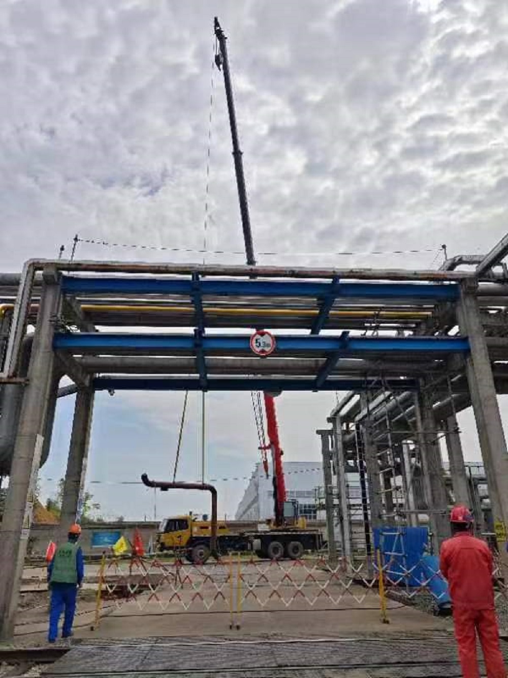 目前該項目已完成支架制作安裝10噸、控制室和緩沖罐及地下罐池建造、站內管道焊口共計約9618吋、外管廊管道焊口共計約3845吋。項目實施過程中,項目部同甲方通力協作、合力攻堅,在保安全的前提下優(yōu)化施工計劃,完善施工組織,在高溫雨季全力以赴三班倒、搶工期、趕進度,保障項目建設高質量穩(wěn)步推進,目前項目整體進度已完成55%。