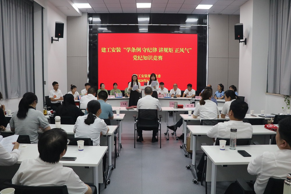 6月27日下午,建工安裝集團舉辦“學條例 守紀律 講規(guī)矩 正風氣”黨紀知識競賽。公司黨委委員、紀委書記李楊,黨委委員、副總經理董雙武,黨委委員、副總經理樊剛出席活動,各黨支部書記、機關部門負責人以及參賽選手等40余人參加活動。