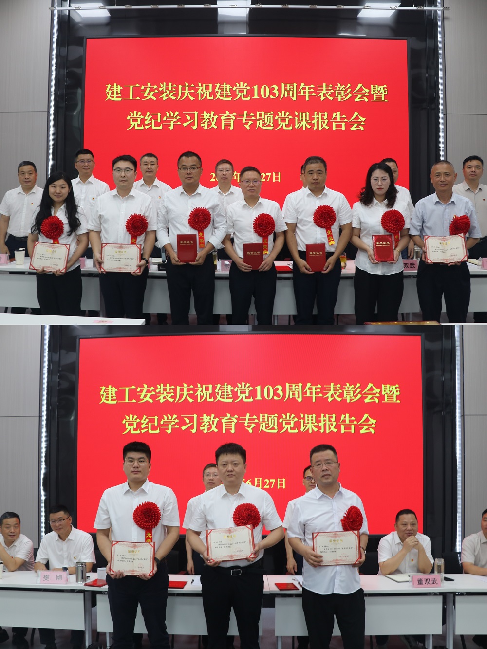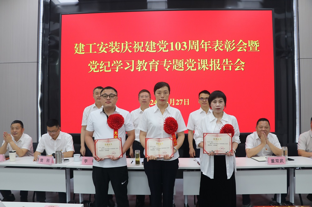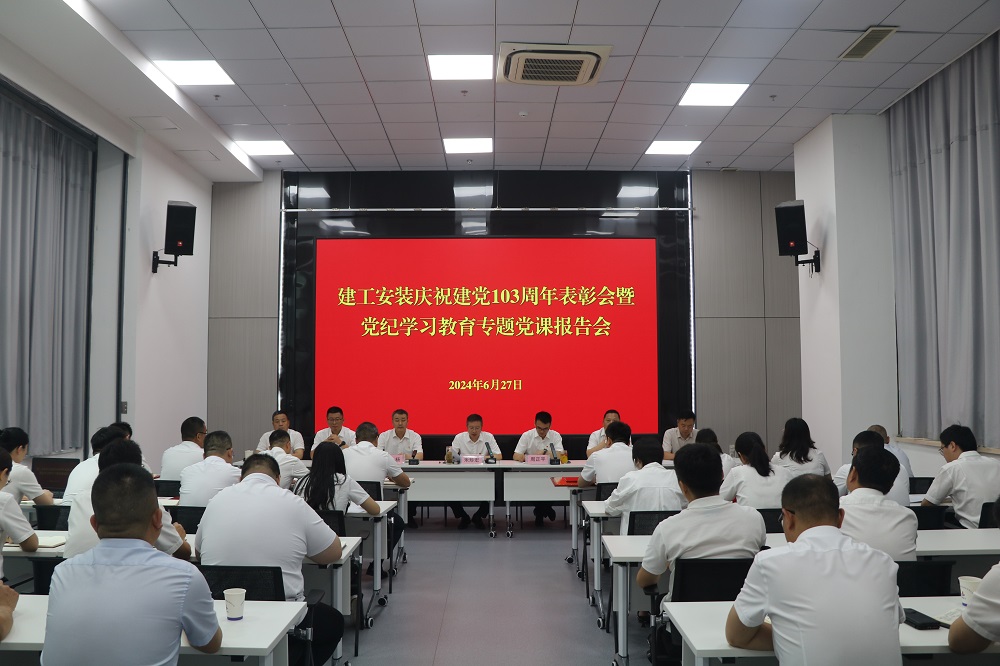 為慶祝中國(guó)共產(chǎn)黨成立103周年,扎實(shí)推進(jìn)黨紀(jì)學(xué)習(xí)教育走深走實(shí)。6月27日上午,建工安裝黨委召開(kāi)慶祝建黨103周年表彰會(huì)暨黨紀(jì)學(xué)習(xí)教育專題黨課報(bào)告會(huì)。公司領(lǐng)導(dǎo)班子成員出席會(huì)議,會(huì)議由公司黨委副書(shū)記、副總經(jīng)理周正平主持。