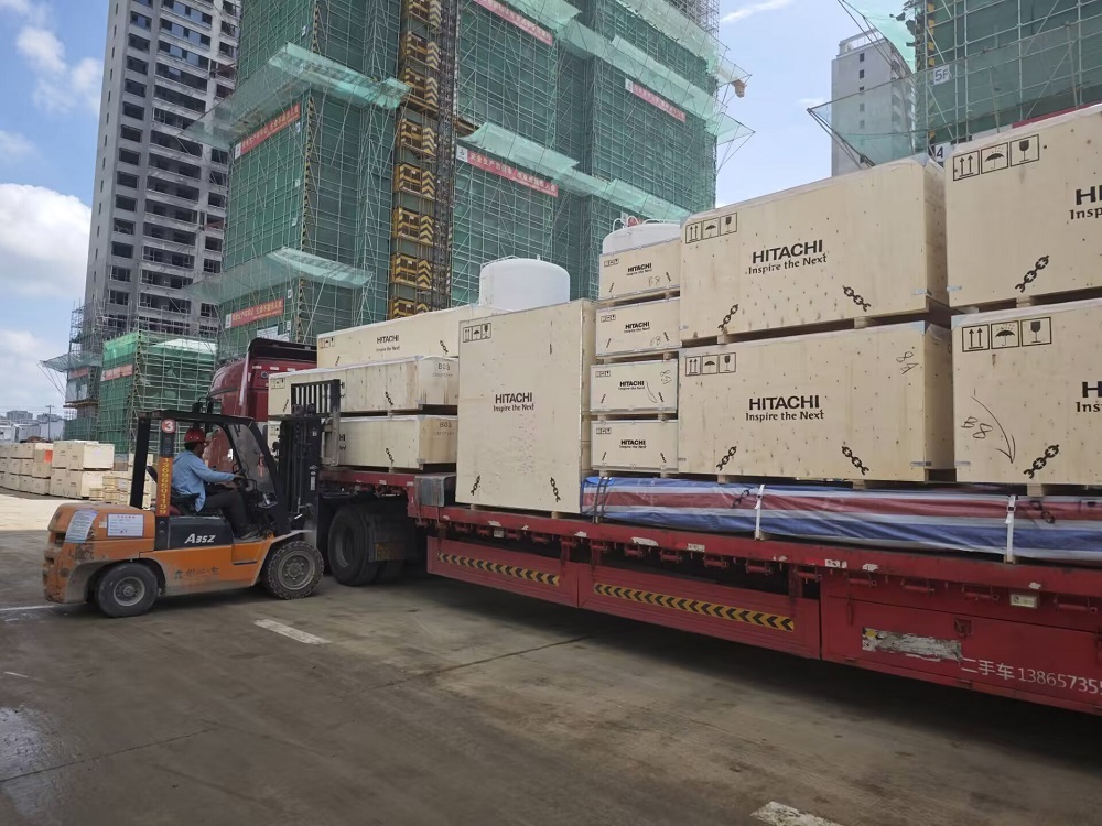 現(xiàn)場(chǎng)施工人員正在卸貨
