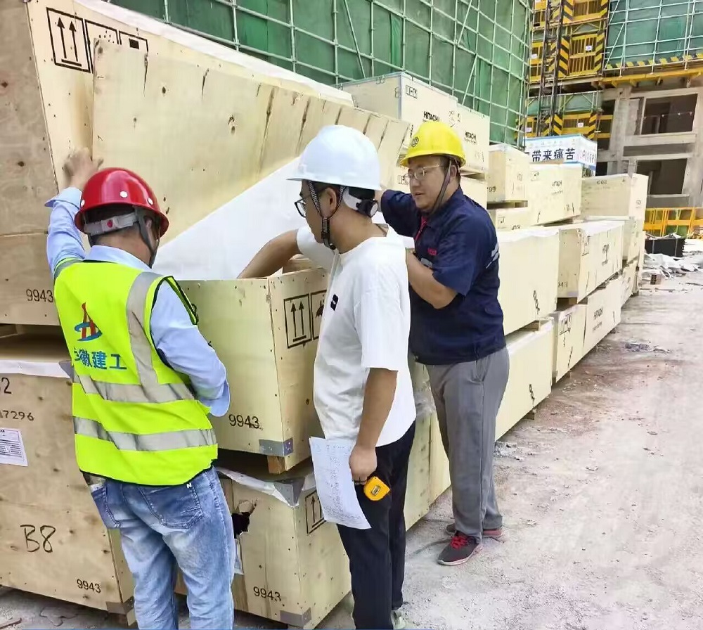 現(xiàn)場(chǎng)人員正在進(jìn)行到貨電梯檢查