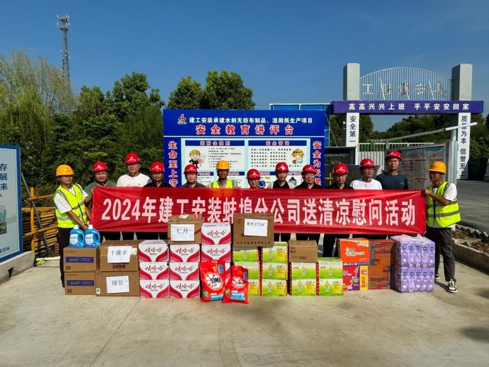 分公司領(lǐng)導(dǎo)班子先后到六鋼大廈(酒店)工程施工總承包項(xiàng)目、蚌埠高新區(qū)電子信息產(chǎn)業(yè)園EPC項(xiàng)目室外廊架管網(wǎng)工程項(xiàng)目、年產(chǎn)2000噸氯蟲(chóng)苯甲酰胺原藥及中間體項(xiàng)目、安徽深巖醫(yī)藥化工科技有限公司醫(yī)藥中間體及新材料項(xiàng)目廠(chǎng)區(qū)單體工程項(xiàng)目、水刺無(wú)紡布制品.濕廁紙生產(chǎn)項(xiàng)目現(xiàn)場(chǎng),為一線(xiàn)施工人員準(zhǔn)備了礦泉水、冰紅茶、綠豆、西瓜等防暑降溫物品,對(duì)他們的辛勤付出表示感謝,并反復(fù)叮囑大家要注意防暑降溫,合理安排施工和休息時(shí)間,確保施工安全。