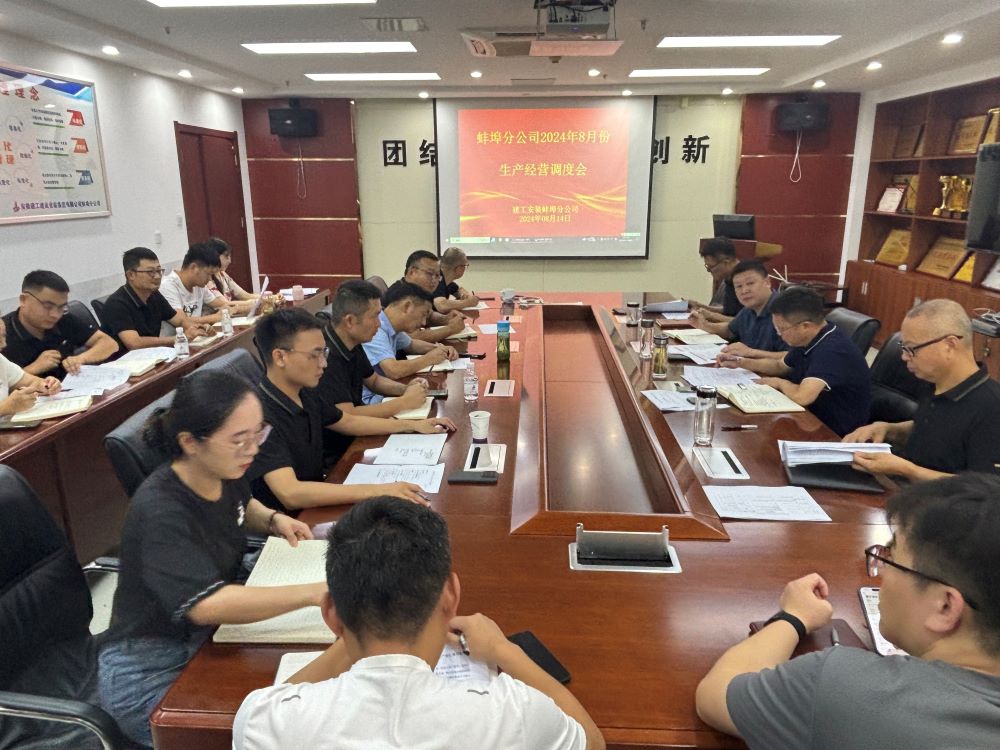 8月14日上午,蚌埠分公司組織召開8月份生產(chǎn)經(jīng)營調度會,分公司領導班子成員、所屬各項目部、機關各部門負責人及工程管理部全體員工參加會議,會議由分公司副經(jīng)理張斌主持。