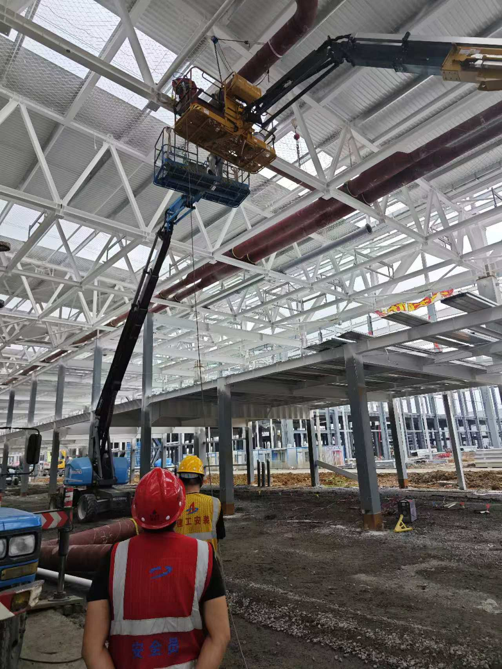 “優(yōu)方案”,項(xiàng)目部根據(jù)現(xiàn)場(chǎng)實(shí)際情況提前優(yōu)化吊裝施工方案,加快冷凍水管道安裝速度;并根據(jù)現(xiàn)場(chǎng)吊裝孔洞,轉(zhuǎn)變思路,定制8米螺旋焊管,大大加快了吊裝施工進(jìn)度。