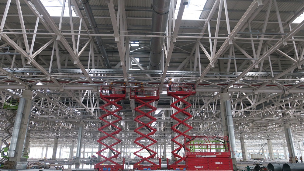 在建工安裝合肥經(jīng)開區(qū)臨湖智能制造產(chǎn)業(yè)園項(xiàng)目現(xiàn)場(chǎng),項(xiàng)目部管理人員及水電班組、通風(fēng)班組、消防班組、虹吸雨水班組施工人員夜以繼日加班加點(diǎn)搶抓進(jìn)度。30名項(xiàng)目管理人員,226名施工人員,96輛登高機(jī)械,采取“白加黑” 、“5+2”模式施工作業(yè),確保各區(qū)域各專業(yè)施工生產(chǎn)穩(wěn)步推進(jìn)。 目前正在進(jìn)行車間一通風(fēng)系統(tǒng)、雨水系統(tǒng)、消防系統(tǒng),壓縮空氣與循環(huán)水系統(tǒng)等安裝作業(yè),站房一同步開展管線預(yù)埋與預(yù)制工作。本周已完成車間一風(fēng)管安裝約4200平方米,雨水管道安裝約1100米,消防管道安裝約590米,橋架安裝約600米。