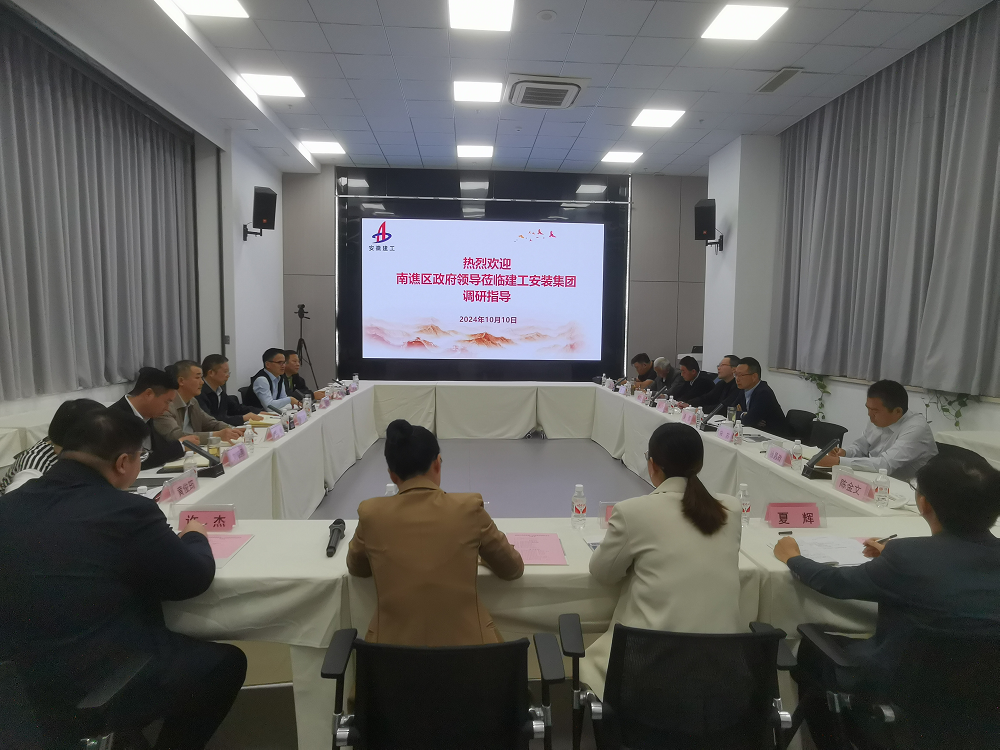 10月10日下午,滁州市南譙區(qū)委常委、常務(wù)副區(qū)長(zhǎng)吳磊,副區(qū)長(zhǎng)謝飛等一行蒞臨建工安裝調(diào)研指導(dǎo),公司黨委書(shū)記、董事長(zhǎng)朱珍宏熱情接待,并舉行工作座談會(huì)。