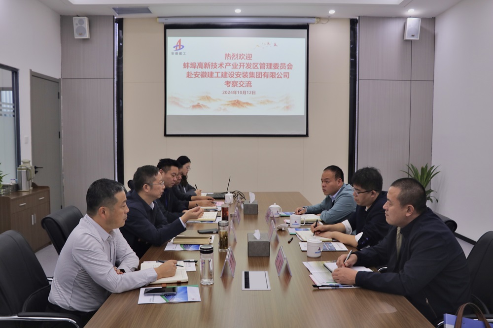會上,朱珍宏重點(diǎn)介紹了安徽建工集團(tuán)三大戰(zhàn)略布局基本情況以及建工安裝集團(tuán)發(fā)展歷程、業(yè)務(wù)范圍、核心競爭優(yōu)勢等;方浩亮分享了蚌埠高新區(qū)和自貿(mào)區(qū)在電子信息、高端制造和新材料新能源等領(lǐng)域所取得的成就與獨(dú)特技術(shù)優(yōu)勢。雙方重點(diǎn)圍繞產(chǎn)業(yè)投資、園區(qū)建設(shè)、技術(shù)創(chuàng)新、光伏儲能方面充分交換意見,為下一步合作打下堅(jiān)實(shí)的基礎(chǔ)。