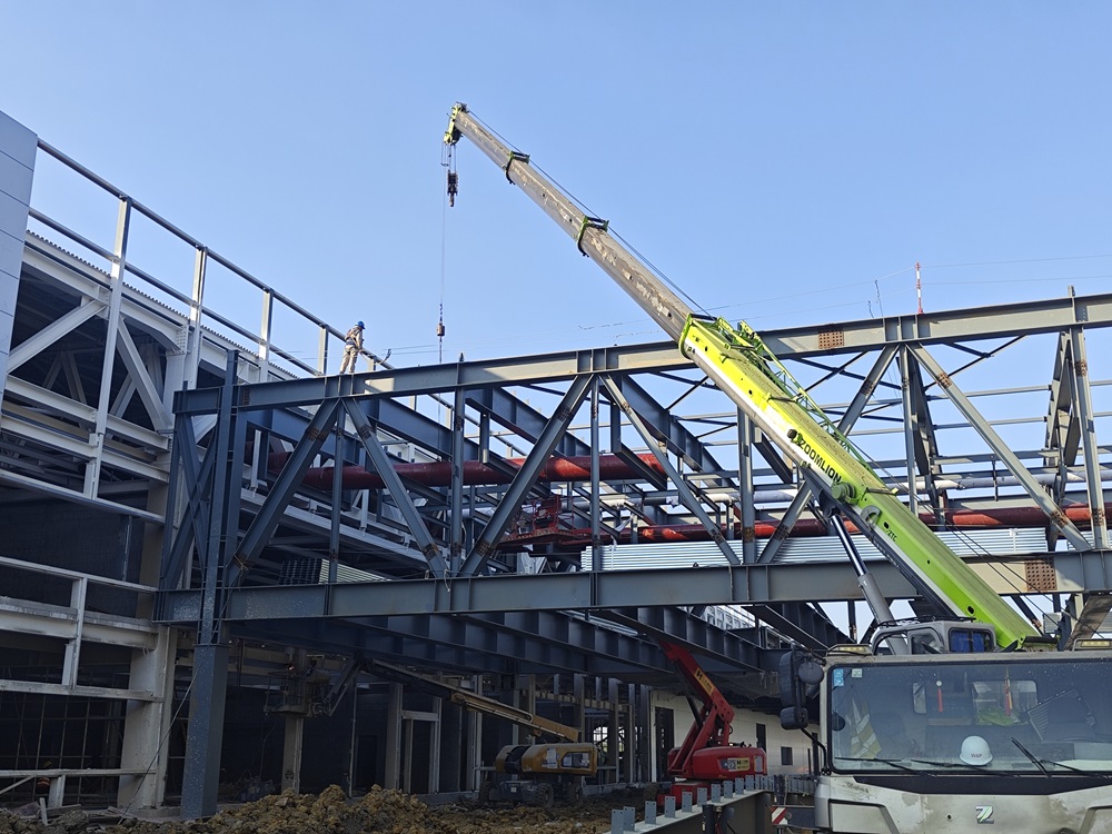 雖已立冬,天氣轉(zhuǎn)涼,但合肥新橋智能制造產(chǎn)業(yè)園一階段一標(biāo)項(xiàng)目部戰(zhàn)鼓依然在響,施工現(xiàn)場(chǎng)依舊是一片奮戰(zhàn)猶酣的火熱場(chǎng)面。吊車(chē)揮舞著“長(zhǎng)臂”、升降車(chē)起起落落、施工車(chē)來(lái)回穿梭、工人們忙忙碌碌,敲擊聲聲聲入耳……一切都在為確保競(jìng)賽節(jié)點(diǎn)努力拼搏著。