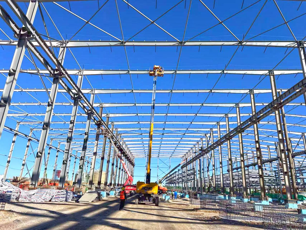 吊車的“長臂”在空中伸展、曲臂車在鋼架間頻繁升降、工程車在場地上來回穿梭、工人們忙碌的身影隨處可見,敲擊聲此起彼伏……針對當前重點建設(shè)任務(wù),項目部精細部署,組織施工力量、細化節(jié)點安排、調(diào)配人機資源,鼓足干勁、狠抓安全、緊扣進度、全員發(fā)力,克服高海拔的特殊施工環(huán)境和偏遠地區(qū)的資源保障困難,項目部提出了“奮戰(zhàn)兩月 決勝年末”的戰(zhàn)斗口號,以“拼”的姿態(tài),“搶”的速度,全力沖刺12月底確保完成廠房封閉目標節(jié)點。