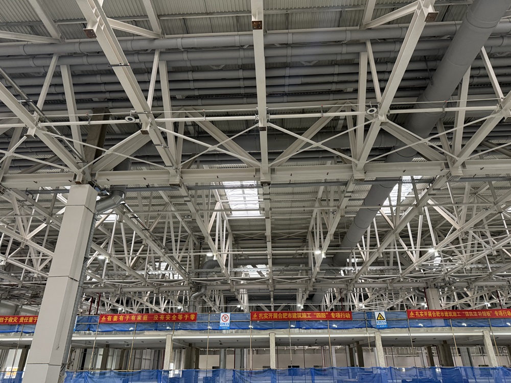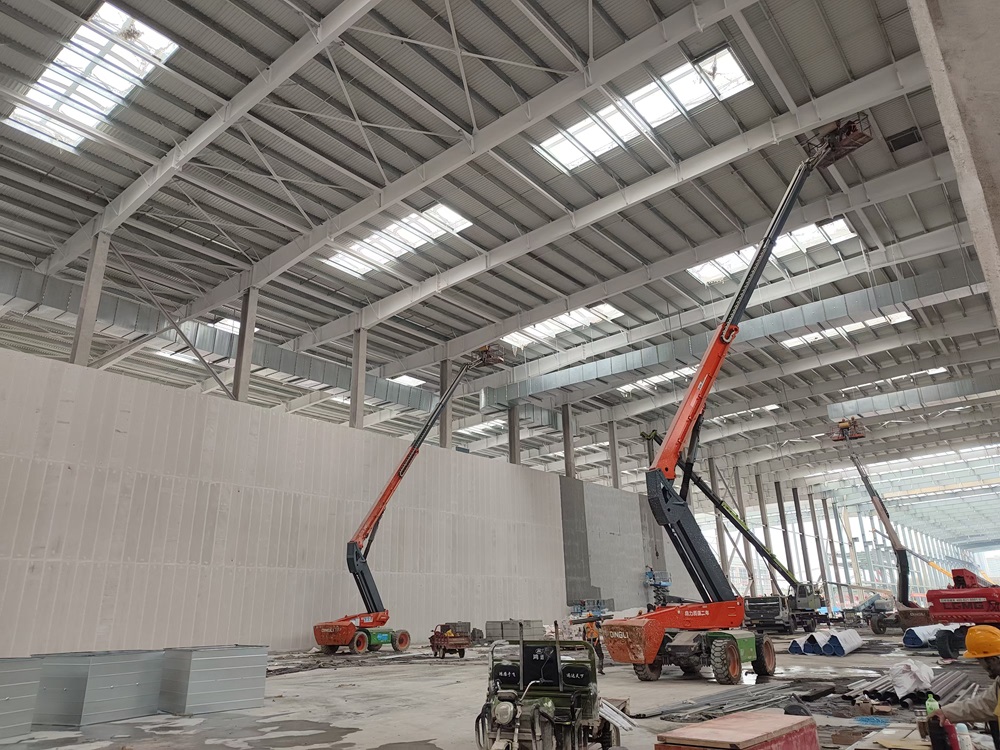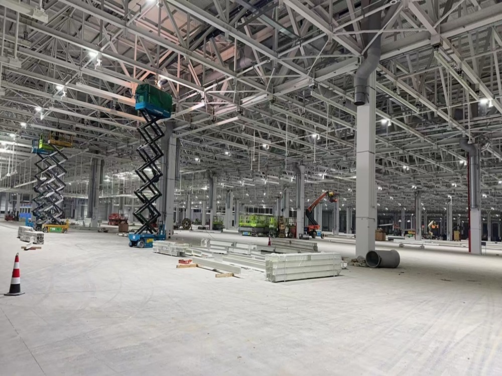 截至目前,車(chē)間一B區(qū)焊裝車(chē)間內(nèi)的給排水管道、消防管道、暖通風(fēng)管、空調(diào)水管、虹吸雨水、630循環(huán)水管均全部安裝完成,已全面進(jìn)入試壓階段。正在進(jìn)行車(chē)間一沖壓車(chē)間及QA樓安裝工作,電氣系統(tǒng)進(jìn)入電纜放線安裝階段,暖通系統(tǒng)進(jìn)入風(fēng)口風(fēng)閥安裝階段。