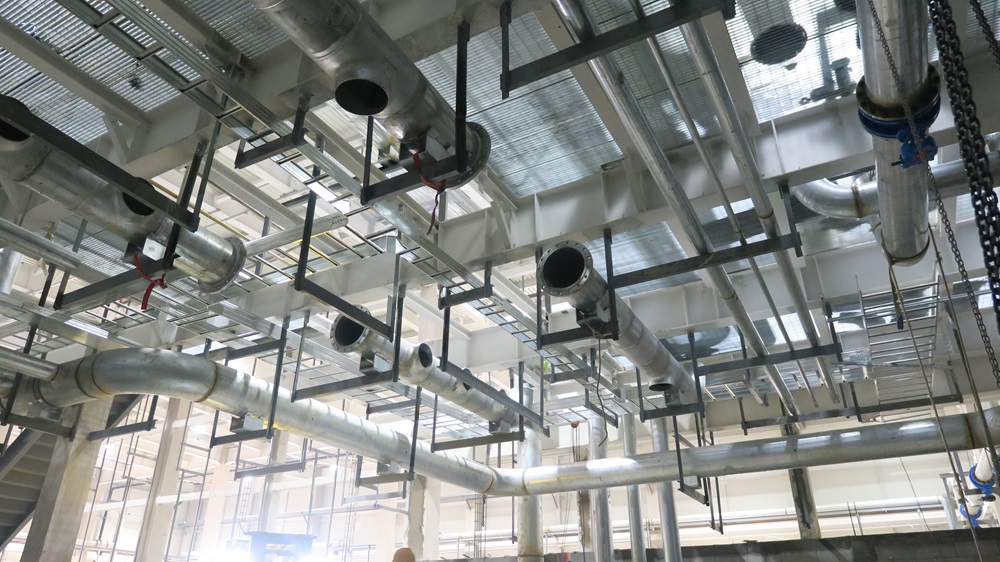截至目前,焊裝車間空調水系統(tǒng)、給水系統(tǒng)、消防水系統(tǒng)已全部完成系統(tǒng)試壓工作。焊裝車間屋頂風機、風機控制電纜、動力電纜也已全部安裝完成。與此同時本項目的能源中心正在有條不紊的推進,冷水機組、冷卻塔、水泵等大型設備陸續(xù)到場。