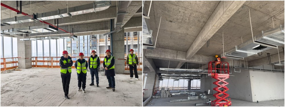 建工安裝合肥分公司桃花科創(chuàng)產(chǎn)業(yè)園EPC項目二期二標水暖電工程項目同樣是一派忙碌有序的景象。為確保節(jié)后安全順利復(fù)工復(fù)產(chǎn),項目部組織開展了復(fù)工復(fù)產(chǎn)專項檢查,重點對臨電、各類設(shè)備、消防、安全防護、應(yīng)急儲備、作業(yè)環(huán)境、施工方案等方面進行系統(tǒng)排查。截至目前,水電暖通班組現(xiàn)場施工人員已集結(jié)完畢,各類機械設(shè)備已開工作業(yè),橋架、風管、空調(diào)設(shè)備安裝等各項施工任務(wù)按計劃有序推進?,F(xiàn)已完成A3號樓新風、暖通風管、橋架、衛(wèi)生間給排水支管、污廢水立管等安裝工作,預(yù)計2月底完成A4號樓新風、空調(diào)、橋架的安裝工作。