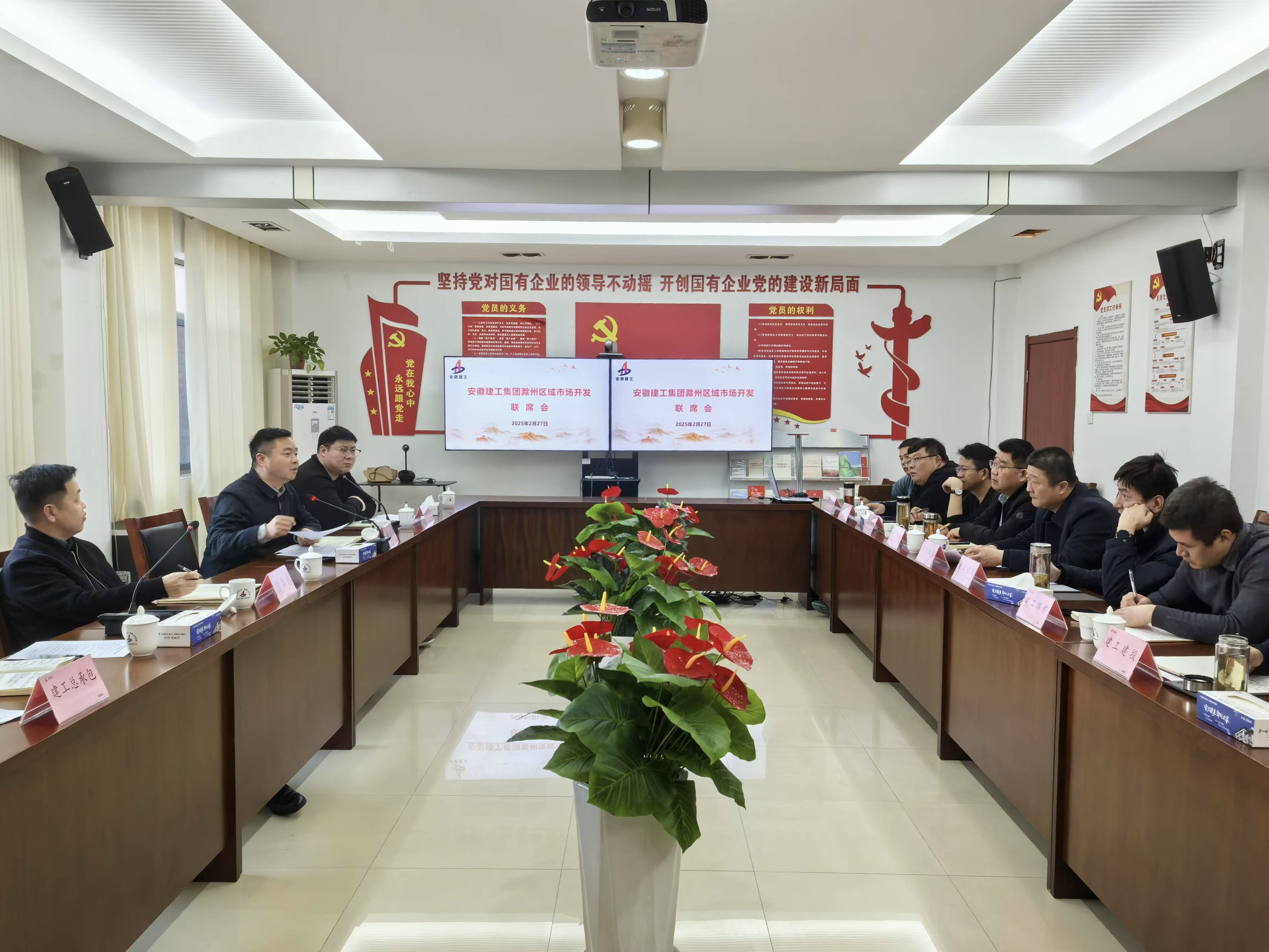 2月27日下午,安徽建工集團(tuán)滁州片區(qū)2025年第一次市場開發(fā)工作機(jī)制協(xié)調(diào)會在建工總承包皖東建投4樓會議室召開。建工安裝黨委委員、副總經(jīng)理劉曉剛,黨委委員、副總經(jīng)理徐華磊,集團(tuán)在滁各單位主要負(fù)責(zé)人及市場開發(fā)相關(guān)人員參加會議,會議由建工安裝市場開發(fā)和投資部經(jīng)理許杰主持。