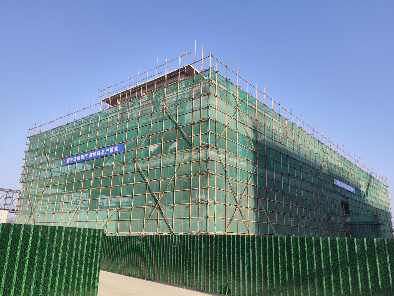 辦公樓外架施工完成,準(zhǔn)備進行砌筑作業(yè)