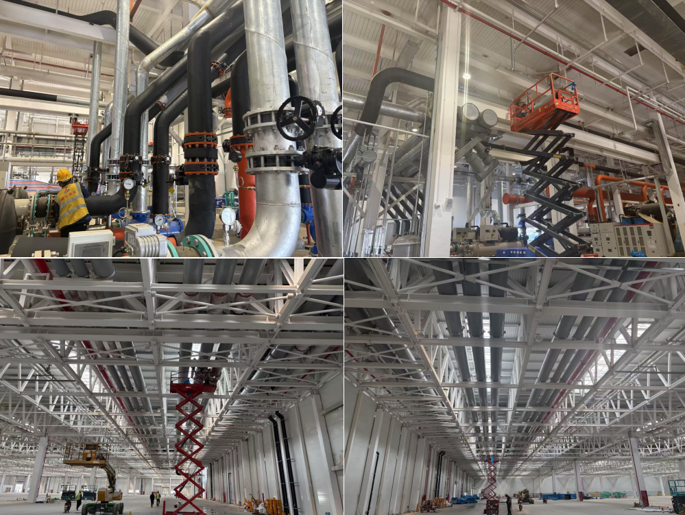 自一季度以來,項目部以“2025開局即決戰(zhàn)”的昂揚斗志,迅速掀起“大干快上”施工熱潮。對各車間、各系統(tǒng)剩余工程量展開全面梳理統(tǒng)計,同時針對剩余工程量堅持每日召開專題會,以倒排計劃為“發(fā)令槍”,對照時間節(jié)點要求各班組加班加點、不折不扣完成。截至發(fā)稿,車間一大面積施工基本完成,形象進度完成約96%;車間二形象進度完成約90%;車間四形象進度完成約92%;站房一各設(shè)備管道基本安裝完成,正在調(diào)試中,形象進度完成約90%。目前,各車間工藝生產(chǎn)均已進場,燃氣鍋爐點火成功、空壓站完成試運行、工藝24h冷凍水、恒溫恒濕空調(diào)均已投入使用;各車間工藝區(qū)送電已到位、供水完成。