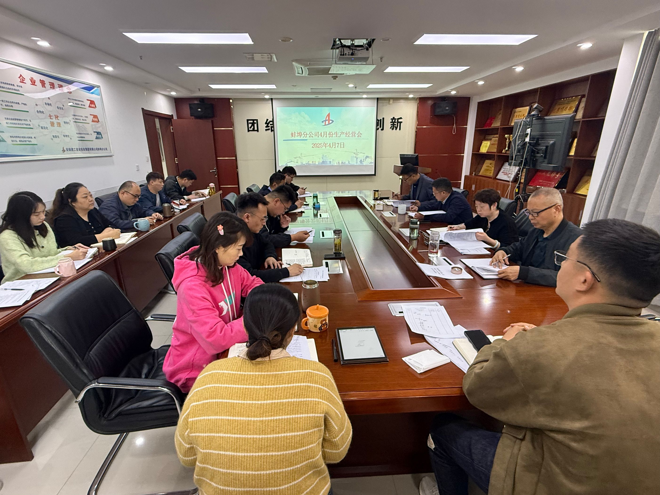 4月7日上午,蚌埠分公司組織召開4月份生產(chǎn)經(jīng)營(yíng)調(diào)度會(huì),分公司領(lǐng)導(dǎo)班子成員、所屬各項(xiàng)目部、機(jī)關(guān)各部門負(fù)責(zé)人及工程管理部全體員工參加會(huì)議。會(huì)議由分公司副經(jīng)理張斌主持。